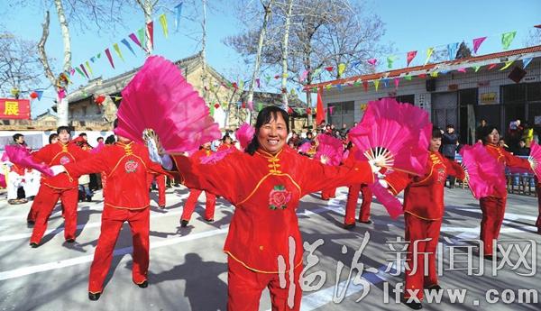 图③为尧都区县底镇黄寺头村的村民表演扭秧歌。