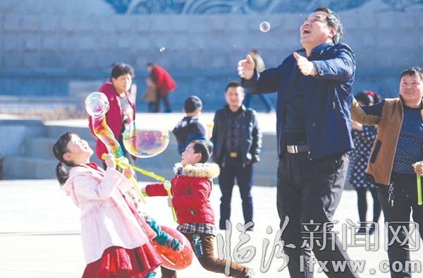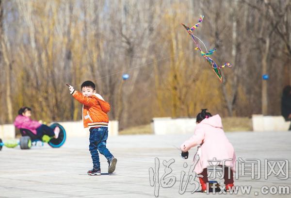 临汾新闻网讯 2月20日,天气晴朗,市民们纷纷走出家门,感受春的气息。在九州广场上市民们三三两两地聚在一起聊天谈笑,孩子们或手拿风车,或放飞风筝,或追逐着五彩肥皂泡,享受着春天带来的快乐。