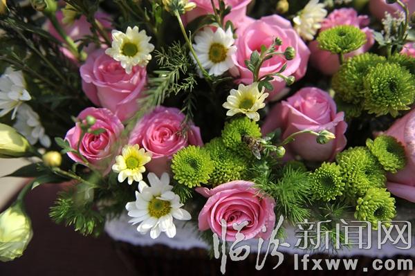 在优美的乐曲伴奏下,别致的香道表演让现场的观众纷纷称赞,随后的茶艺表演与花艺表演同时进行。“竹外桃花三两枝,春江水暖鸭先知”,借用苏轼的这句诗来形容冲茶程序中的第一步“烫杯”再合适不过了,茶艺师将茶杯放在茶盘中,经过开水的烫洗,洁白如玉的茶杯冒着热气,像一只只春江中游泳的小鸭子。接下来还有“投茶”“冲水”“闷茶”“敬茶”“闻香”“品茶”等冲茶程序,经过茶艺师的用心冲泡,阵阵沁人心脾的茶香扑面而来,游客们也陶醉其中。一旁来自朵朵香花艺生活馆的花艺师贺晓红专注于自己的插花表演,“这是银柳、百合、苏醒玫瑰、扣菊??”贺晓红一边表演,一边向游客们讲解花的品种。“我们现在的生活节奏很快,工作压力也大,插花、品茶都能让我们的生活慢下来,细细品味当中的乐趣。”贺晓红的两盆插花作品“望春”和“一览春色”引得众人赞叹。花艺表演与茶艺表演相结合,就像是一幅浓墨重彩的画卷,相互衬托、相得益彰。