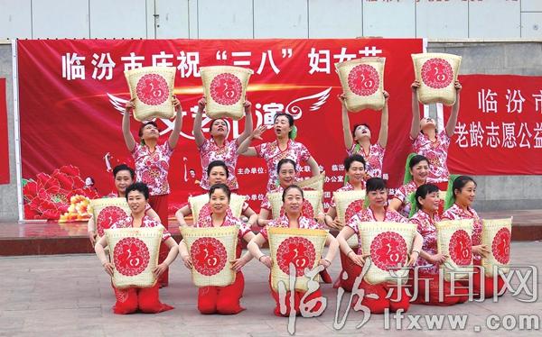 临汾新闻网讯 3月7日,市妇联、文明办、老龄委和尧都区文化局联合举办的庆“‘三八’文艺汇演”在市区平阳广场举行,演员们以饱满的活力和积极乐观的情绪,展现了广大妇女向往美好生活、建设幸福家园的勃勃英姿。