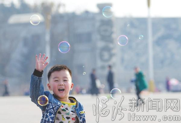 临汾新闻网讯 日前,我市晴好天气持续,气温也逐渐回升,到处洋溢着春天的气息。图为汾河公园九州广场内,小朋友玩得不亦乐乎。