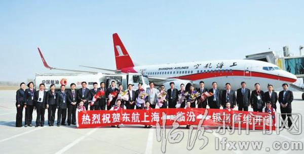 临汾新闻网讯 3月31日,临汾民航机场正式开通“上海=临汾=银川”航线,从临汾到上海约2个小时,临汾至银川约1个小时30分钟。首航航班由东方航空B738-800飞机执飞,航线每周二、四、六各一班,新航线的开通,使临汾民航机场又多了条空中走廊,打开了临汾与东南沿海地区、西北地区的空中通道。记者 闫锐鹏 摄