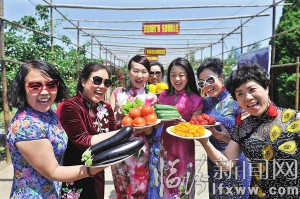临汾新闻网讯 5月15日,在我市广奇观光采摘园,市民在展示采摘的蔬菜。近年来,以绿色、生态、有机为主题的采摘园、欢乐农场广受市民欢迎,人们在享受健康、绿色蔬菜的同时,更收获了采摘的快乐。
