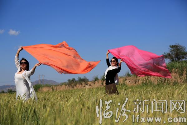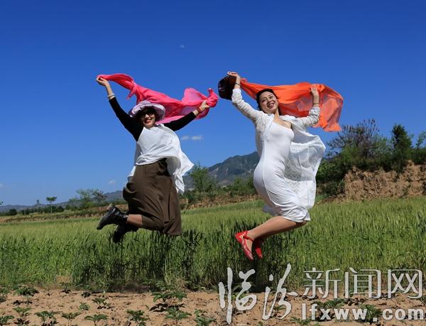 5月15日,临汾市旗袍协会模特儿队参观完陶寺观象台后,走进附近的田间地头,激情跳跃秀青春。