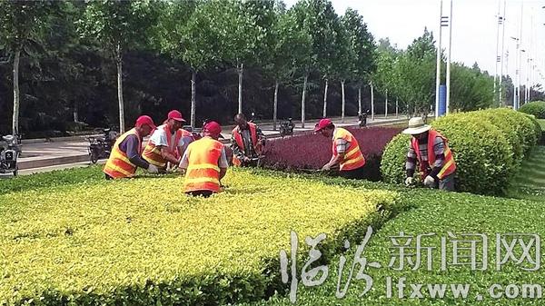临汾新闻网讯 连日来,市绿化二队组织绿化专业技术人员分路段、分区域对辖区绿地草坪进行重点修剪,有效地提升了绿化整体的色彩感和立体感,全力提升绿化管护水平。图为市绿化二队工作人员正在修剪绿化带。