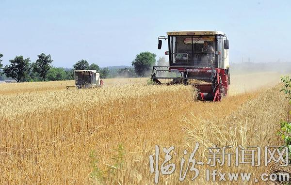 临汾新闻网讯 6月10日,收割机在襄汾县新城镇闫店村收割小麦。进入6月,我市小麦大面积进入成熟期,夏收作业由南到北进入收割高峰期,田间麦香四溢,遍地金黄,广大农民朋友抓住有利时机,颗粒归仓。