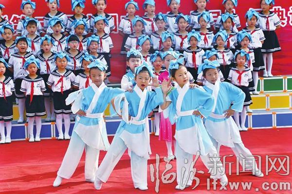 临汾新闻网讯 近日,临汾市实验小学举办了“诵读中华经典,与圣贤同行”校园文化月经典诵读展示活动,进一步拓展学校国学传统文化,使孩子们从小接受优秀传统文化的洗礼。图为学生在诵读弟子规。