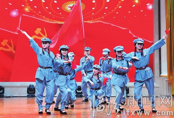临汾新闻网讯 6月28日,山西华尧游乐园有限公司联合党支部举办“庆七一,颂党恩”活动,更好地让员工立足本职工作,服务经济建设。图为员工在表演舞蹈《红色娘子军》。