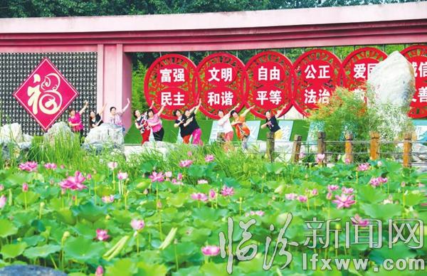 临汾新闻网讯 时下正是荷花盛开的季节,汾河公园内多处荷花争奇斗艳,拍荷、赏荷正当时。图为7月5日上午,市民在临汾廉政广场荷花园旁边健身、休闲。