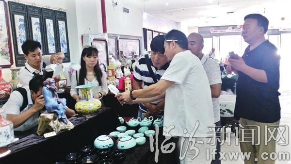 临汾新闻网讯 近日,蓝白相映的景德镇青花瓷亮相尧庙锦悦城,吸引众多市民前去观展。青花瓷是汉族传统名瓷之一,产地为江西景德镇,被称为人间瑰宝,始创于唐代,到明、清两代为高峰。它是用氧化钴料在坯胎上描绘纹样,施釉后高温一次烧成,晶莹明快,美观隽久。图为制瓷的师傅在介绍青花瓷丰满的构图。