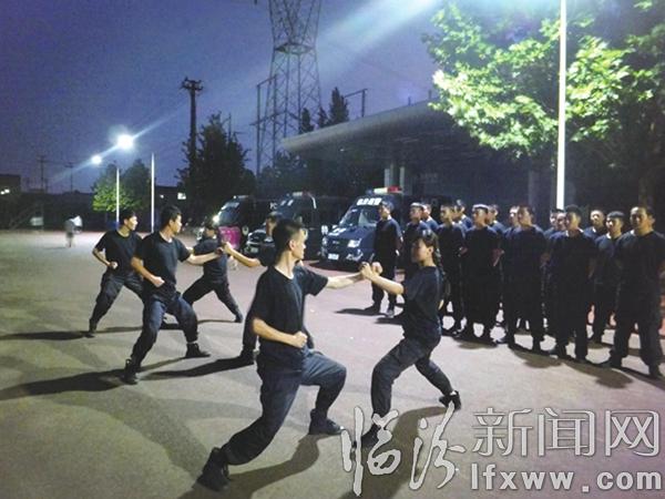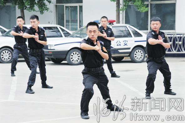 一个接一个的训练项目,使队员们的衣裳被汗水浸透。他们克服了高温带来的不利因素,依然保持着昂扬的斗志,认真地做着每一个动作。正是他们的辛苦付出,维护着辖区治安的稳定有序,换来了群众的平安幸福。图①②③为训练现场。