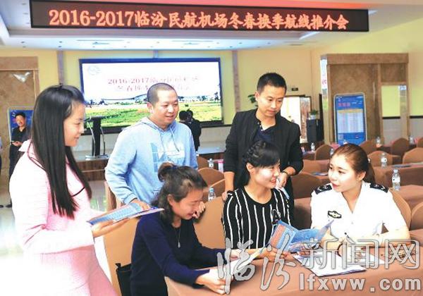 临汾新闻网讯 10月17日,在临汾民航机场冬春换季航线推介会上,来自旅游行业的代表在和工作人员交流旅游线路。目前,临汾民航机场通过航线优化调整、旅游线路促销及政策优惠等方式,已吸引众多游客走进大美临汾,感受这里悠久的历史和灿烂的文化。记者 闫锐鹏 摄