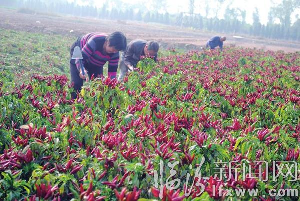 临汾新闻网讯 近年来,曲沃县史村镇大力调整农业种植结构,发展特色种植,积极引导农民种植辣椒,带动当地农民增收。图为史村镇靳庄村的农民孙斌正在忙着采摘樱椒。(张荣)