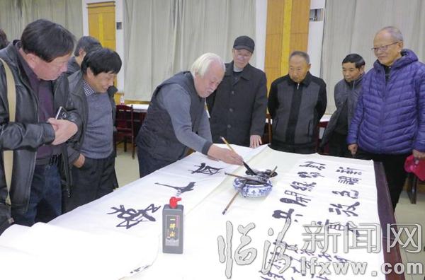 临汾新闻网讯 11月26日,在市委党校,老年“火炬手”在进行书画笔会。当日,我市“不忘初心,夕阳更红”第四期火炬手培训班举办书画笔会,通过现场创作、名师指导以及技艺交流等环节,全面提升“火炬手”的书画创作水平和审美情趣,以传帮带的形式,引导更多人通过书画创作修身养性。 记者 闫锐鹏 摄