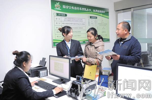临汾新闻网讯 12月6日,在市公共自行车运营中心,工作人员在为市民讲解自行车办理相关信息。