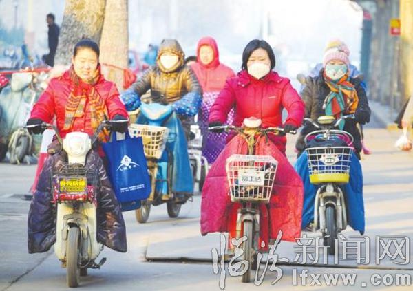 临汾新闻网讯 1月8日早,在解放路,行人纷纷穿上厚重的大衣,应对降温。当天,受冷空气影响,市区西北风4-5级,温度-4到6℃,市气象台发布道路结冰黄色预警信号。