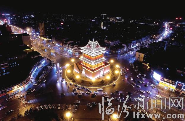 临汾新闻网讯 2月1日晚,航拍镜头下的临汾大鼓楼华灯齐放、流光溢彩。春节假日,每当夜幕降临,被彩灯装扮的鼓楼焕发出绚丽夺目的光彩,与改造一新的鼓楼南北大街上古色古香的文化街景融为一体、交相辉映,构成了一幅美丽的画卷。