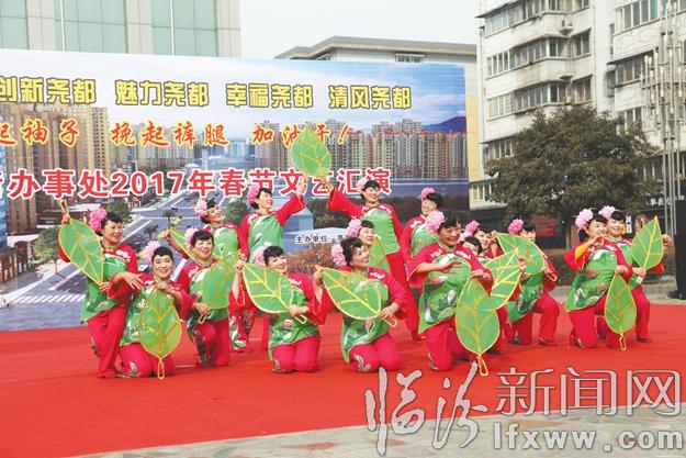 据悉,此次以“撸起袖子挽起裤腿加油干”为主题的文艺演出由各社区居民自编自演,有威风锣鼓、舞蹈、健美操、情景剧、独唱、大合唱等形式多样的节目,为居民送上了一场精彩的文化盛宴。