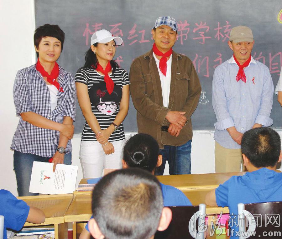 2011年众多明星在红丝带学校(左起蒋雯丽、章子怡、濮存昕、顾长卫)