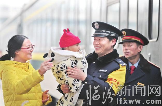 临汾新闻网讯 日前,临铁公安处乘警支队执勤民警在协助乘客有序乘车。春运期间,该支队在应对春节返程客流高峰中,开展了“微笑行动”和“爱民服务”,在有力维护列车治安秩序的同时,开展了一系列志愿服务,保障旅客平安出行。
