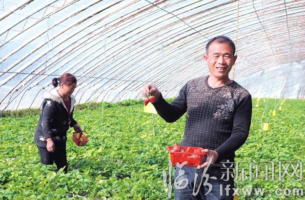 临汾新闻网讯 近日,曲沃县红运草莓园里,红彤彤的草莓娇艳欲滴,令人眼馋。据了解,该草莓园位于史村镇西海村,园主人杨红运利用辽宁草莓研究所温室草莓技术,搭建起了空间大、采光好的无后墙第六代日光温室大棚。他种植的5亩温室草莓,通过引进章姬、红颜、小白、W6等新品种,结出的草莓个大、色泽鲜艳、果香四溢、口味俱佳。每逢节假日,前来园里采摘草莓的游客络绎不绝。 张荣 摄