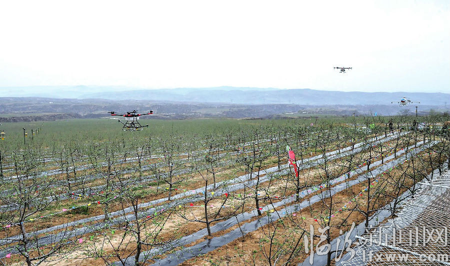 临汾新闻网讯 4月16日,吉县柏山寺乡正在使用无人植保机对万亩苹果树进行病虫害统防统治,极大地提高了工作效率,减少对环境的污染及农药残留。据了解,该县2016年全乡苹果面积达3万亩,其中挂果面积2万亩,年产苹果3万吨,产值达1.8亿元以上。