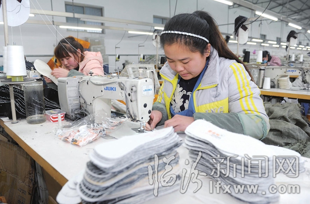 临汾新闻网讯 近日,在襄汾县汾城镇北膏腴村黄土地布鞋有限公司,车间里的女工在制作鞋垫。襄汾县妇联拓宽农村留守妇女就业渠道,依托“妇女手工制品专业合作社”和“巾帼创业示范基地”等,引导农村留守妇女就近选择务工,在家门口当起“上班族”,既照顾了家庭又增加了收入,成为农村致富增收的主力军。