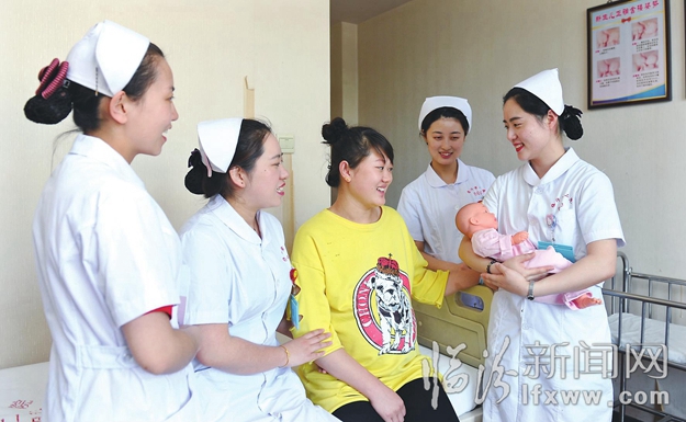 临汾新闻网讯 5月12日,在市第二人民医院妇产科病区,护理小组在为“准妈妈”冯建建做产前心理减压。