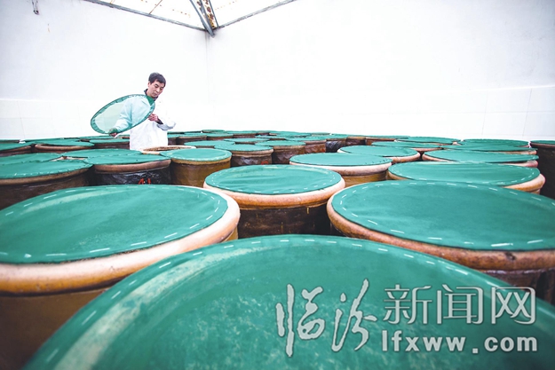图为工作人员正在查看糖渍发酵情况。