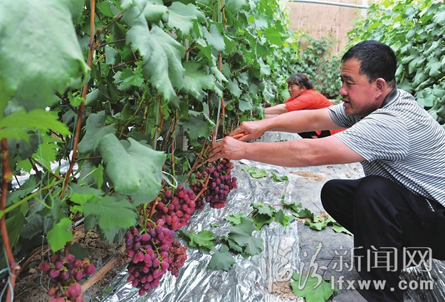 临汾新闻网讯 近日,在翼城县唐兴镇封比村,村民赵国峰夫妇正在大棚里采摘葡萄。近年来,封比村引进葡萄新品种,大力发展葡萄种植产业,目前,该村的葡萄已进入成熟期,上市后受到了广大消费者的青睐。