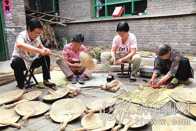 临汾新闻网讯 近日,尧都区金殿镇杜家庄村64岁的关香荷在自家小院里编织蒲扇。杜家庄村是尧都区有名的编织蒲扇专业村,每到夏季来临,村民们就围坐在一起,编蒲扇、拉家常,既增加了收入,又拉近了邻里间的关系。