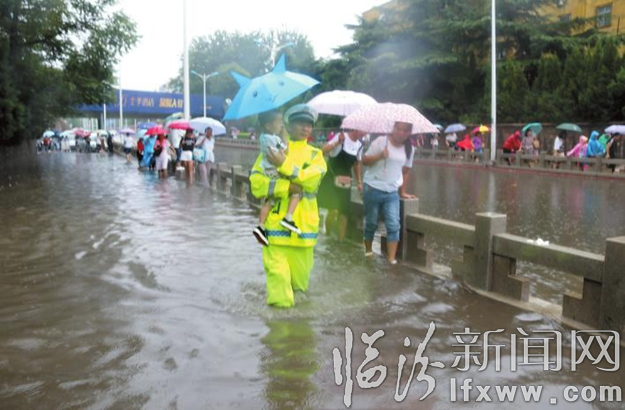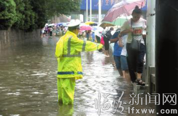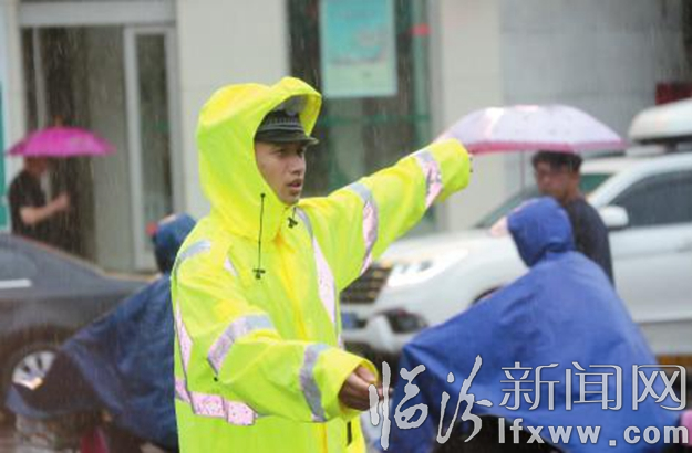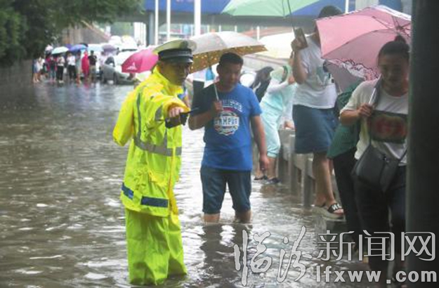 临汾新闻网讯 7月27日,临汾市突降暴雨,许多低洼地段都出现了大量积水,临汾公安交警迅速启动应急预案,疏堵保畅,在积水地段加派警力,劝导机动车辆绕行,民警在齐膝深的积水中提示过往行人注意安全,引导行人安全出行。