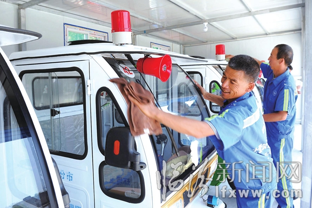 临汾新闻网讯 日前,市环卫局电动三轮垃圾收集车驾驶员在清洗三轮车。为了进一步解决电动三轮垃圾收集车停放以及充电等问题,市环卫局多方选址,在市区南城和北城各建立了一个配套设施齐全、环境优美、干净卫生的电动三轮垃圾收集车停车场,为电动车巡回收集垃圾营造良好工作环境,确保市区小街小巷垃圾不落地。