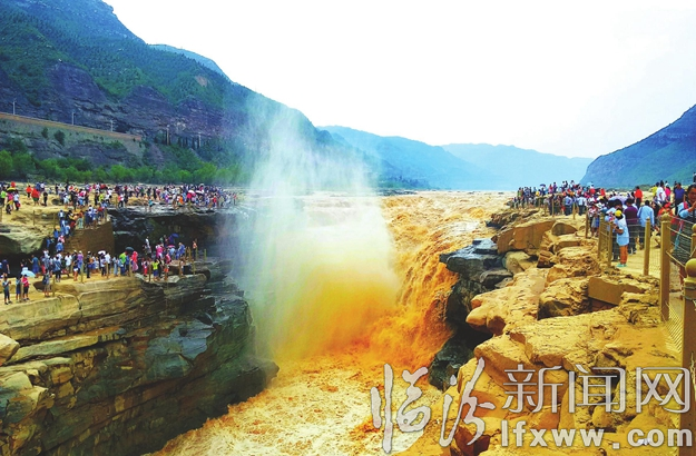 临汾新闻网讯 8月5日,洪峰过后的黄河壶口瀑布再现雄风。在壶口岸边远远就能听见瀑布奔腾怒吼的声音,走近壶口,只见浑浊厚重的黄河水犹如一条巨龙从天而降,扎入龙槽,翻滚出无数巨浪,咆哮向前,令无数游客叹为观止。据壶口景区管理部门消息,自从7月31日景区重新开放后,目前来壶口景区旅游的人数日渐增多,客流将会持续到9月初。