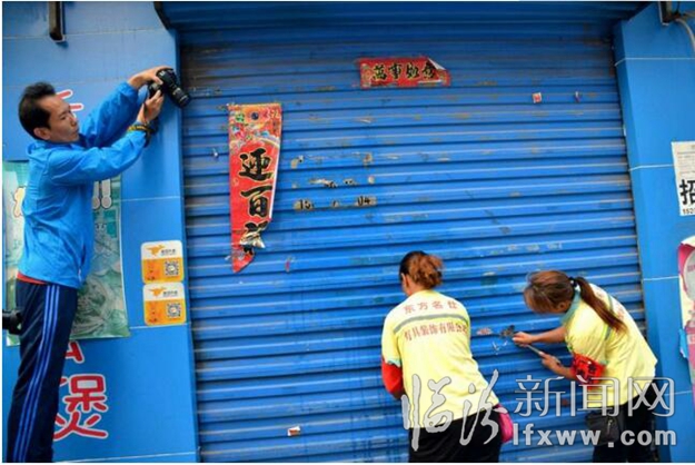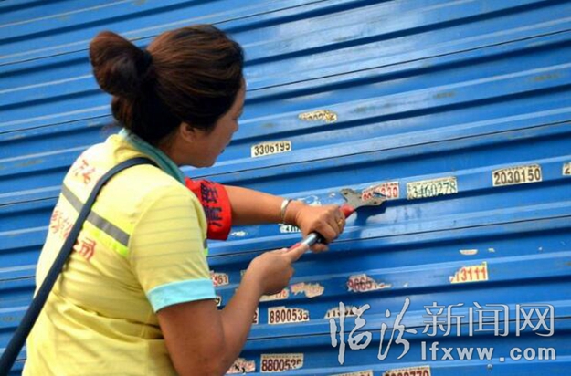 原来他们是市环卫处的清洁工人,为了城市环境、市容市貌的整洁和不影响临街门店的正常营业,一大早便开始清理大街小巷里的“牛皮癣”小广告。