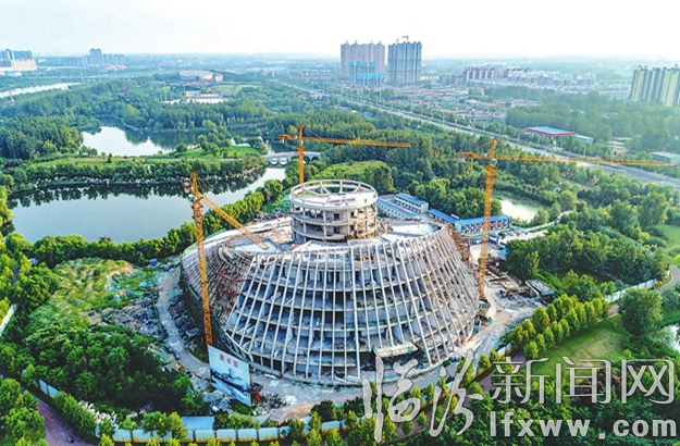 临汾新闻网讯 9月5日,航拍镜头下的临汾市图书馆建设工地已初具规模,建设工人在紧张施工。