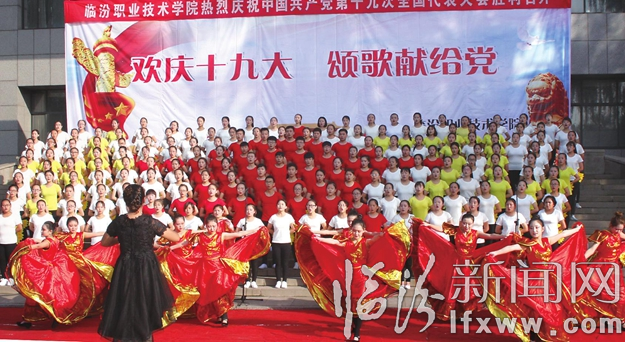 临汾新闻网讯 10月19日,临汾职业技术学院举行了“欢庆十九大,颂歌献给党”歌咏比赛。学生们以饱满的热情、嘹亮的歌声,唱响时代主旋律,展示了当代大学生的青春风采,用歌声表达了对党的热爱和对祖国美好未来的祝愿。