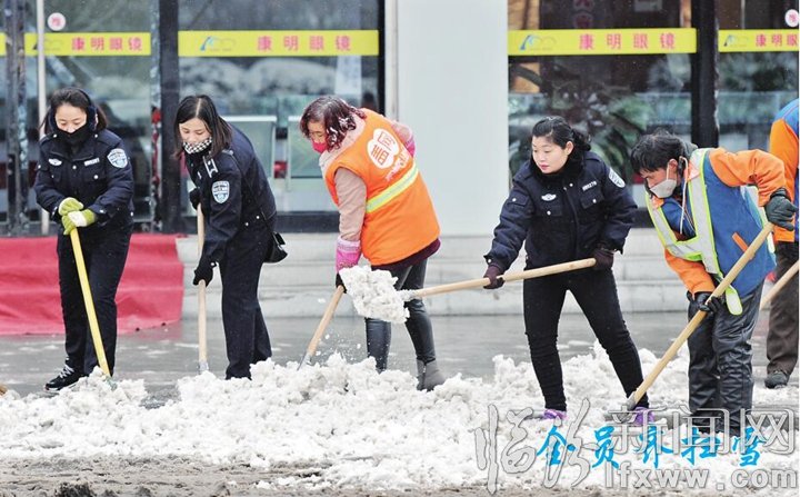 临汾新闻网讯 1月4日,在市区鼓楼东大街,市环卫局的工作人员在清理道路积雪。大雪的降临,给城区主干街道带来一定影响,市环卫局启动应急措施,全员上岗,对辖区积雪进行了全面清理,保障了市区道路的通畅。