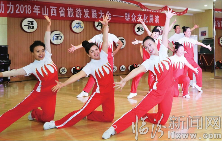 临汾新闻网讯 连日来,市群众文化艺术馆主办了主题为“助力2018山西省旅游发展大会,群众文化展演”的活动,通过歌舞专场、戏曲专场、综合专场等形式,表演了以浓浓的临汾地域文化元素为主题的精彩节目,宣传十九大精神,弘扬社会正能量,助力旅发大会成功举办。图为文艺工作者在市群众艺术馆表演舞蹈。