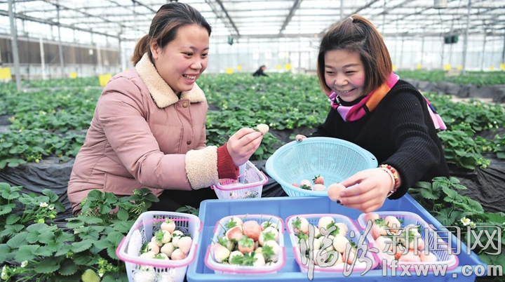 临汾新闻网讯 1月30日,在我市尧王台现代农业示范区有巢农业有限公司草莓采摘园,游客在采摘草莓新品种“白雪公主”。该公司引进新品种草莓,并通过改良土壤、节水滴灌、施配方有机肥等措施,种植出来的草莓色泽鲜艳、口味纯正,深受消费者的喜爱。