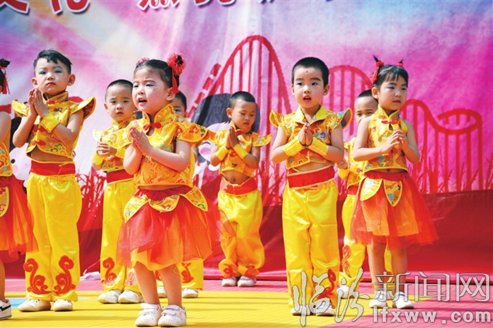 临汾新闻网讯 6月1日,尧都区第二幼儿园小一班的小朋友们正在表演《少林英雄》。当日,该幼儿园举办了以“幸福启航”为主题的庆祝活动。