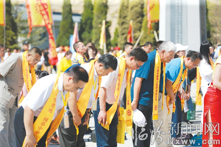 临汾新闻网讯 6月11日,农历四月廿八,正值帝尧诞辰之日,2018首届尧都民间祭拜尧帝大典在尧都临汾尧帝陵景区举行。在祭拜现场,雄浑的鼓声,深沉的钟声,在庄严肃穆中表达了对帝尧的无限崇敬。伴着古韵悠扬的乐曲声,各代表依次向帝尧敬献花篮。