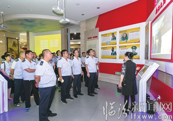 6月27日,古县国税局在市反腐倡廉警示教育基地开展“迎七一”党员主题教育活动,通过观看和学习图片资料和警示案例,警示党员干部,做到防微杜渐、警钟长鸣。图为该局党员干部在参观学习警示教育文化墙。