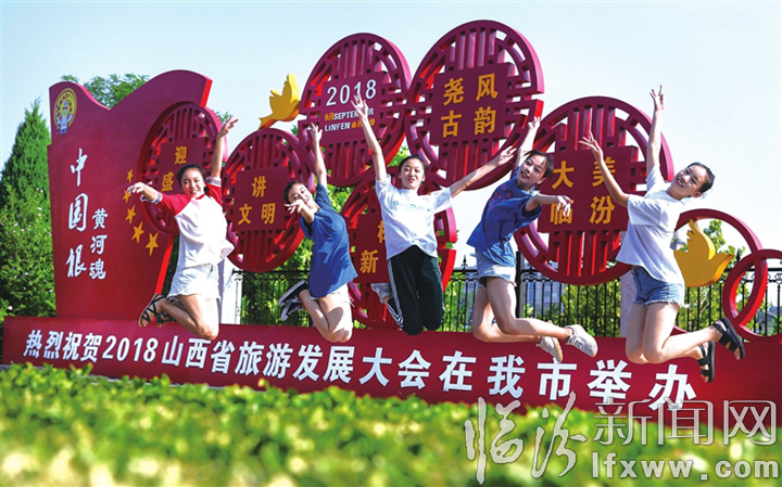 临汾新闻网讯 8月24日,在市区鼓楼西街助力旅发大会主题展板前,临汾舞蹈世界的文化志愿者在合影留念。