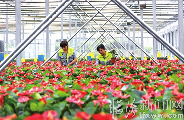 临汾新闻网讯 近日,大宁现代农业花卉双创示范园区的园丁们在管理即将上市的花卉。该园区位于大宁县曲峨镇道教村,占地320亩,总投资1.37亿元。采取“公司+农户”的合作方式,带动2000余农户发展花卉种植,其中有200名建档立卡贫困户实现增收脱贫。