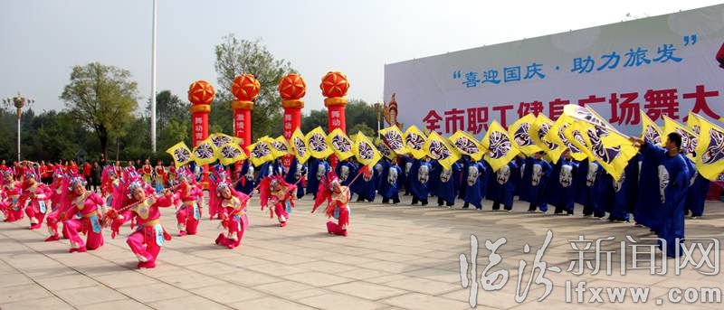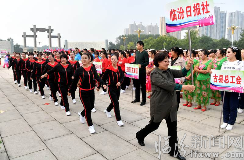 临汾新闻网讯 9月28日上午,由市总工会主办的“喜迎国庆·助力旅发”全市职工健身广场舞大赛在汾河景区九州广场开幕。经过精心组织和前期选拔,共有20支代表队400余名职工参加比赛。