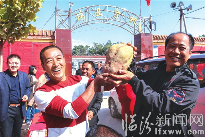 临汾新闻网讯 金秋十月,洪洞县首届红薯文化节在该县淹底乡杨岳村举办,通过举办农民文艺展演、薯王争霸赛等丰富多彩的活动,挖掘特色农产品文化内涵,做大做强红薯特色产业,助力脱贫攻坚。图为10月8日杨岳村村民在展示丰收的红薯。
