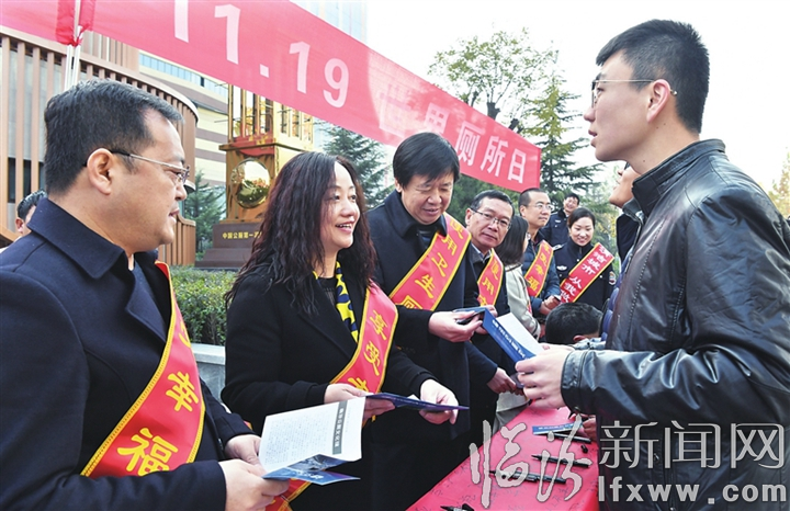 临汾新闻网讯 11月19日,在市公厕文化馆前,环卫工作者在向市民宣传世界厕所日的有关知识。当日是第六个“世界厕所日”,市环卫局开展“文明使用厕所、享受幸福生活”主题活动,邀请社会各界人士走进公厕文化馆,了解厕所文化,感受“厕所革命”带给群众的方便和幸福感,全面提升市民健康文明的生活观念和满意度。