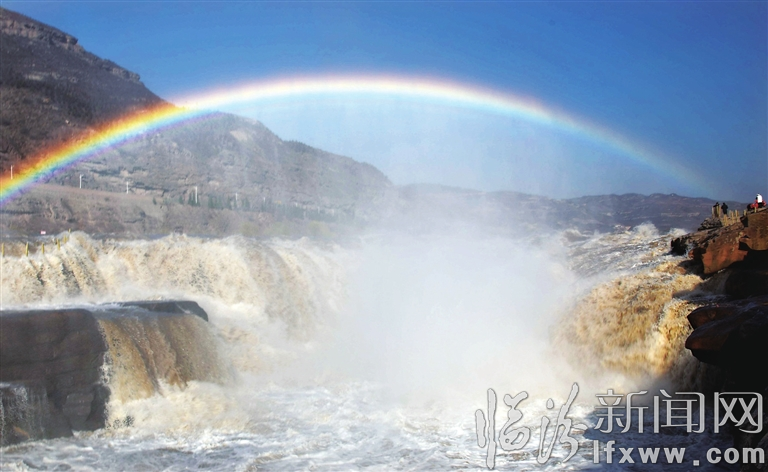 临汾新闻网讯 日前,在吉县黄河壶口瀑布,一道美丽的彩虹高挂在瀑布上空,色彩绚丽夺目,与奔腾的浪花交相辉映,为初冬的壶口瀑布增添了靓丽的风景。