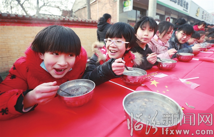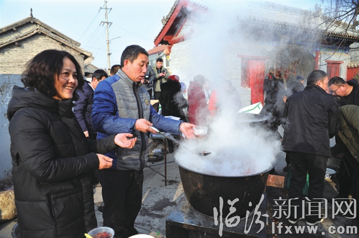 临汾新闻网讯 1月13日,在襄汾县古城镇关村,村民们在品尝热气腾腾的腊八粥。当日是农历腊月初八,该村第三届“腊八节”火热开场,村民们熬起了香喷喷的腊八粥,全村人聚在一起共享腊八粥,分享节日的喜悦。